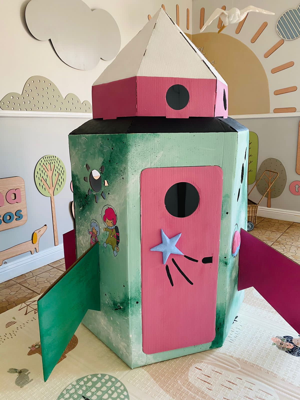 Our Rocket will take your little ones to infinity and beyond. It has two doors and lots of little windows to peep out of. It’s spacious interior allows for lots of fun and games inside.